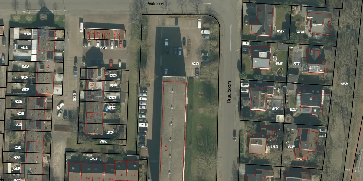 Het perceel waarop Draaiboom 95 staat heeft een oppervlakte van 4828 m². Dit is een zeer groot perceel. De perceeloppervlakte wordt geregistreerd door het Kadaster. Gedetailleerde informatie over de maten van dit perceel kunt u vinden in het rapport Kadastrale kaart met maatvoering van Draaiboom 95.