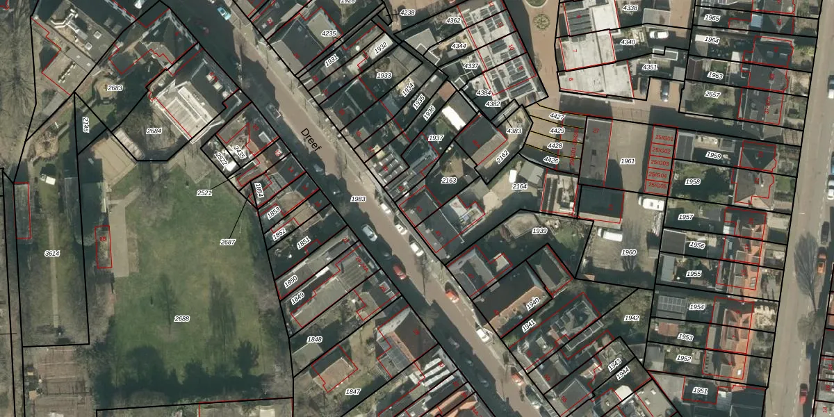 Gebruik de zoekbalk of klik op een perceel voor informatie over de adressen binnen dit perceel.