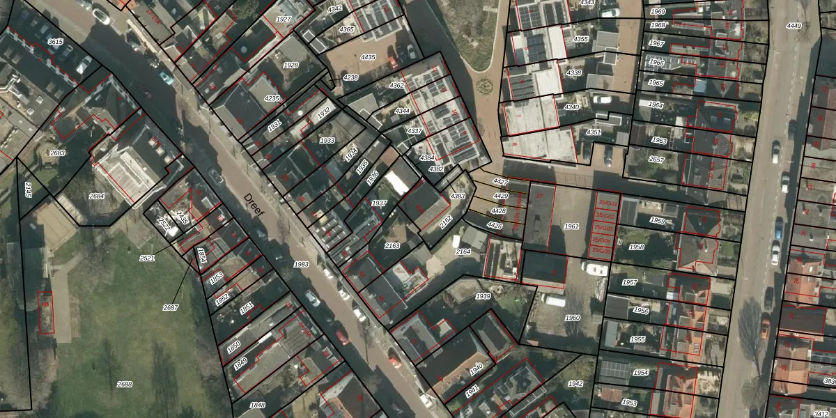 Dreef 45-A is gelegen op kadastraal perceel PCH00N2162. Deze kadastrale aanduiding is uniek en wordt gebruikt door het Kadaster om eigendomsrechten en andere zakelijke rechten vast te leggen. Het perceel maakt onderdeel uit van de kadastrale gemeente Princenhage.