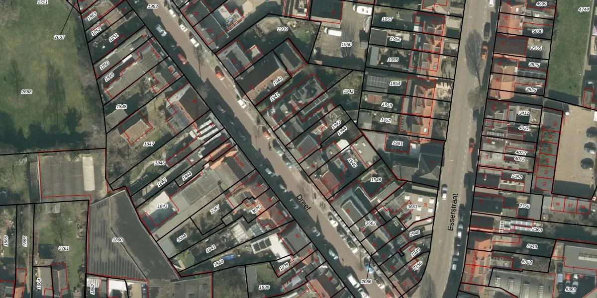 Het perceel waarop Dreef 55 staat heeft een oppervlakte van 155 m². Dit is een middelgroot perceel. De perceeloppervlakte wordt geregistreerd door het Kadaster. Gedetailleerde informatie over de maten van dit perceel kunt u vinden in het rapport Kadastrale kaart met maatvoering van Dreef 55.