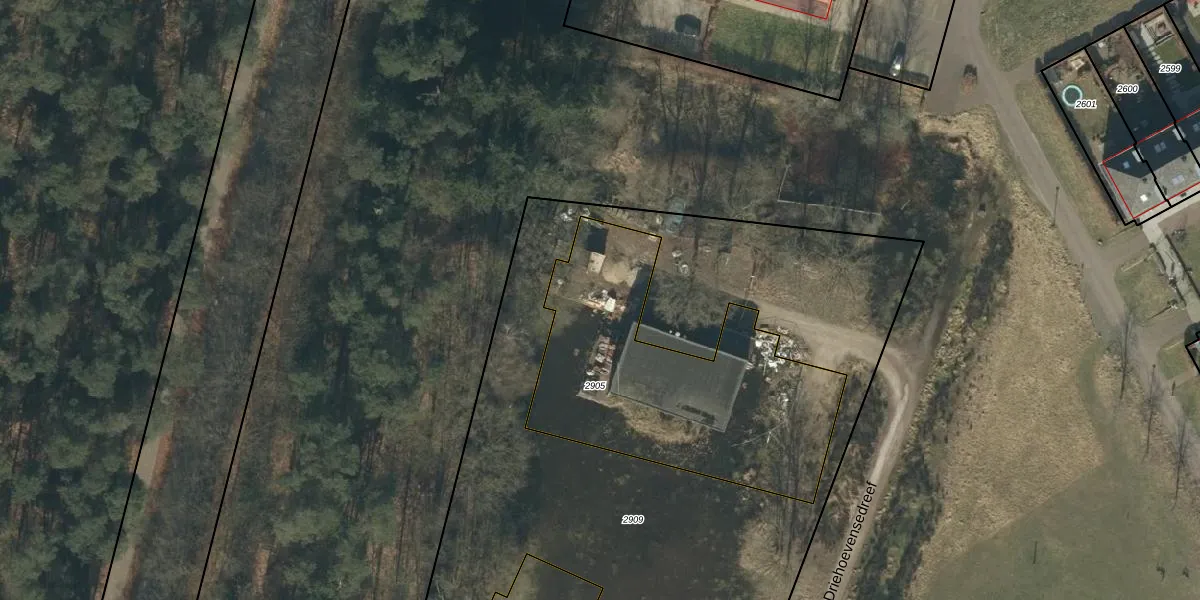 Driehoevensedreef 46 is gelegen op kadastraal perceel GNK02H2905. Deze kadastrale aanduiding is uniek en wordt gebruikt door het Kadaster om eigendomsrechten en andere zakelijke rechten vast te leggen. Het perceel maakt onderdeel uit van de kadastrale gemeente Ginneken.