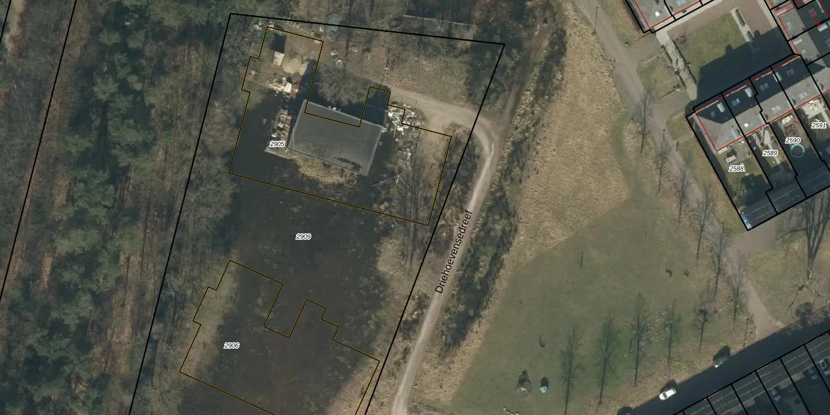 Driehoevensedreef 52 is gelegen op kadastraal perceel GNK02H2905. Deze kadastrale aanduiding is uniek en wordt gebruikt door het Kadaster om eigendomsrechten en andere zakelijke rechten vast te leggen. Het perceel maakt onderdeel uit van de kadastrale gemeente Ginneken.