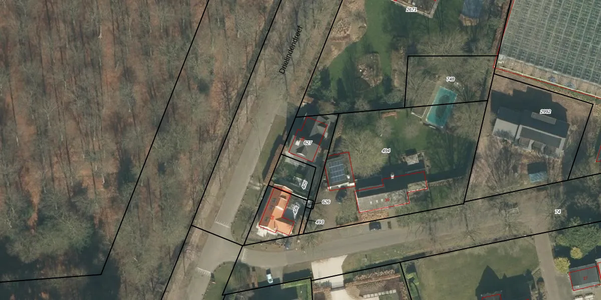 Drielindendreef 59 is gelegen op kadastraal perceel PCH00P627. Deze kadastrale aanduiding is uniek en wordt gebruikt door het Kadaster om eigendomsrechten en andere zakelijke rechten vast te leggen. Het perceel maakt onderdeel uit van de kadastrale gemeente Princenhage.