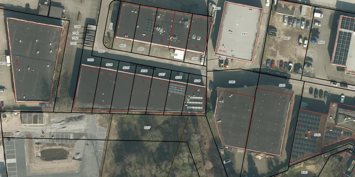 Druivenstraat 67 is gelegen op kadastraal perceel BDA00G5038. Deze kadastrale aanduiding is uniek en wordt gebruikt door het Kadaster om eigendomsrechten en andere zakelijke rechten vast te leggen. Het perceel maakt onderdeel uit van de kadastrale gemeente Breda.