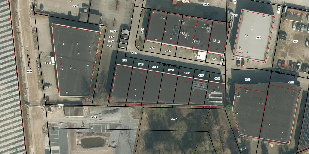 Druivenstraat 73 is gelegen op kadastraal perceel BDA00G5035. Deze kadastrale aanduiding is uniek en wordt gebruikt door het Kadaster om eigendomsrechten en andere zakelijke rechten vast te leggen. Het perceel maakt onderdeel uit van de kadastrale gemeente Breda.