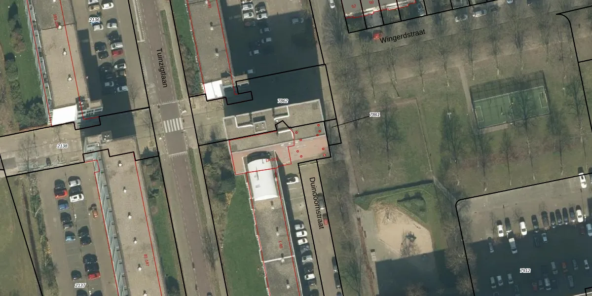Het perceel waarop Duindoornstraat 95-B staat heeft een oppervlakte van 3338 m². Dit is een zeer groot perceel. De perceeloppervlakte wordt geregistreerd door het Kadaster. Gedetailleerde informatie over de maten van dit perceel kunt u vinden in het rapport Kadastrale kaart met maatvoering van Duindoornstraat 95-B.