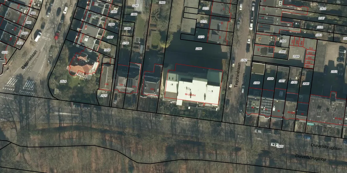 Duivelsbruglaan 100-E4 is gelegen op kadastraal perceel GNK02H2260. Deze kadastrale aanduiding is uniek en wordt gebruikt door het Kadaster om eigendomsrechten en andere zakelijke rechten vast te leggen. Het perceel maakt onderdeel uit van de kadastrale gemeente Ginneken.