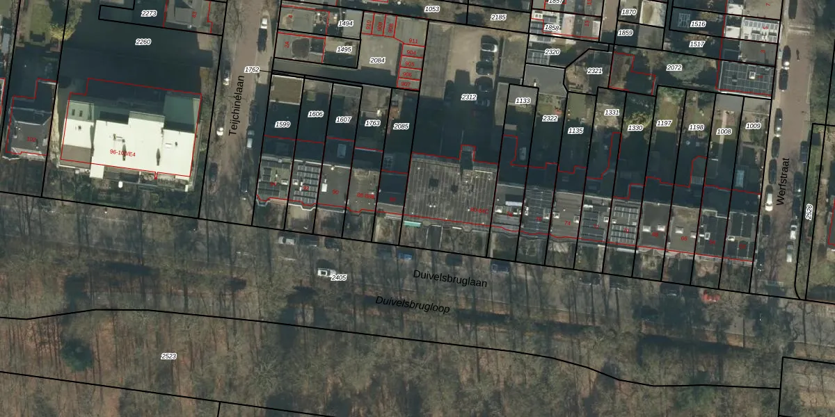 Duivelsbruglaan 84 is gelegen op kadastraal perceel GNK02H2312. Deze kadastrale aanduiding is uniek en wordt gebruikt door het Kadaster om eigendomsrechten en andere zakelijke rechten vast te leggen. Het perceel maakt onderdeel uit van de kadastrale gemeente Ginneken.