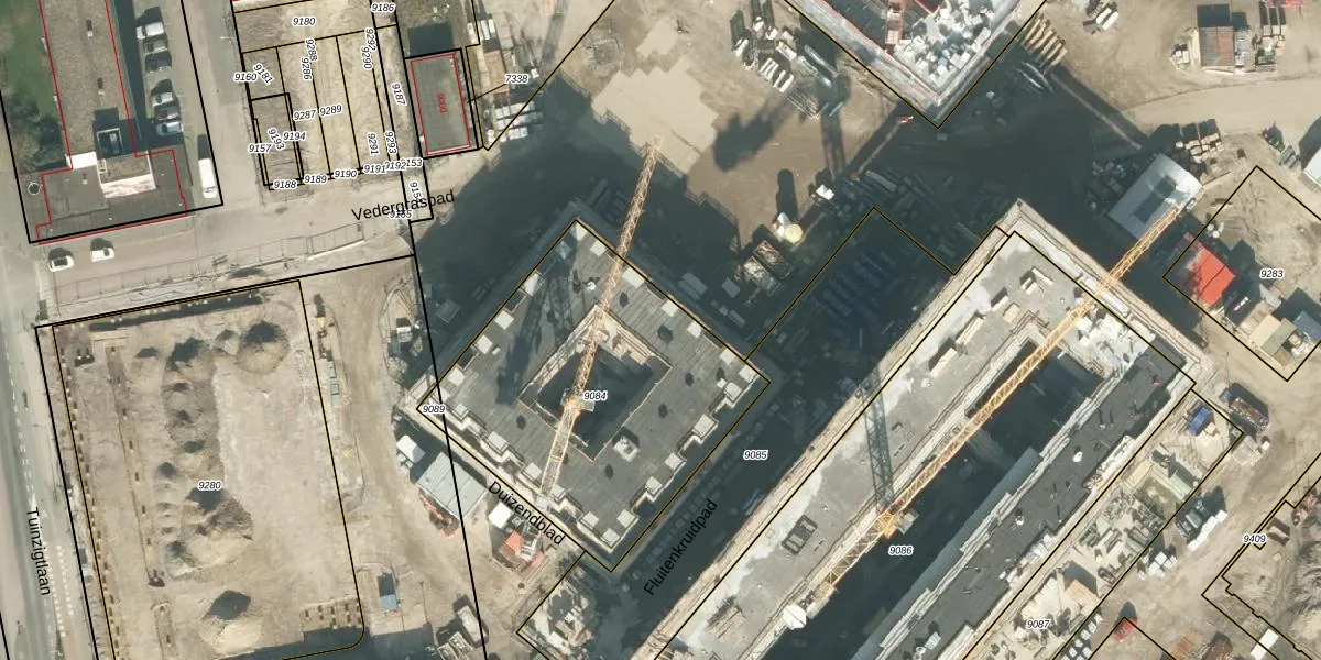 Het perceel waarop Duizendblad 12 staat heeft een oppervlakte van 1424 m². Dit is een zeer groot perceel. De perceeloppervlakte wordt geregistreerd door het Kadaster. Gedetailleerde informatie over de maten van dit perceel kunt u vinden in het rapport Kadastrale kaart met maatvoering van Duizendblad 12.