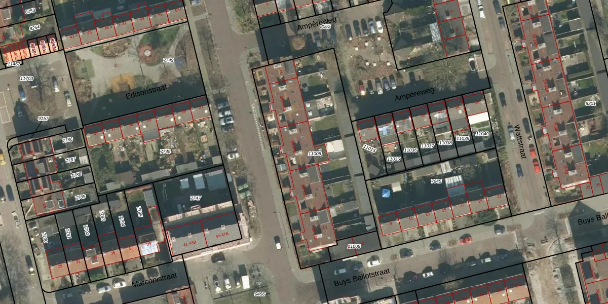 Het perceel waarop Edisonstraat 34-B staat heeft een oppervlakte van 1778 m². Dit is een zeer groot perceel. De perceeloppervlakte wordt geregistreerd door het Kadaster. Gedetailleerde informatie over de maten van dit perceel kunt u vinden in het rapport Kadastrale kaart met maatvoering van Edisonstraat 34-B.
