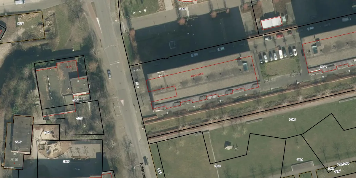 Het perceel waarop Edisonstraat 42-C8 staat heeft een oppervlakte van 1,3 ha. Dit is een zeer groot perceel. De perceeloppervlakte wordt geregistreerd door het Kadaster. Gedetailleerde informatie over de maten van dit perceel kunt u vinden in het rapport Kadastrale kaart met maatvoering van Edisonstraat 42-C8.