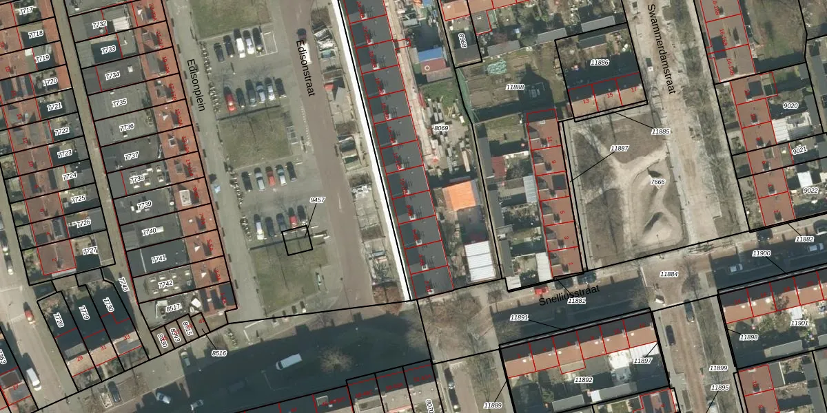Het perceel waarop Edisonstraat 8-B staat heeft een oppervlakte van 1772 m². Dit is een zeer groot perceel. De perceeloppervlakte wordt geregistreerd door het Kadaster. Gedetailleerde informatie over de maten van dit perceel kunt u vinden in het rapport Kadastrale kaart met maatvoering van Edisonstraat 8-B.