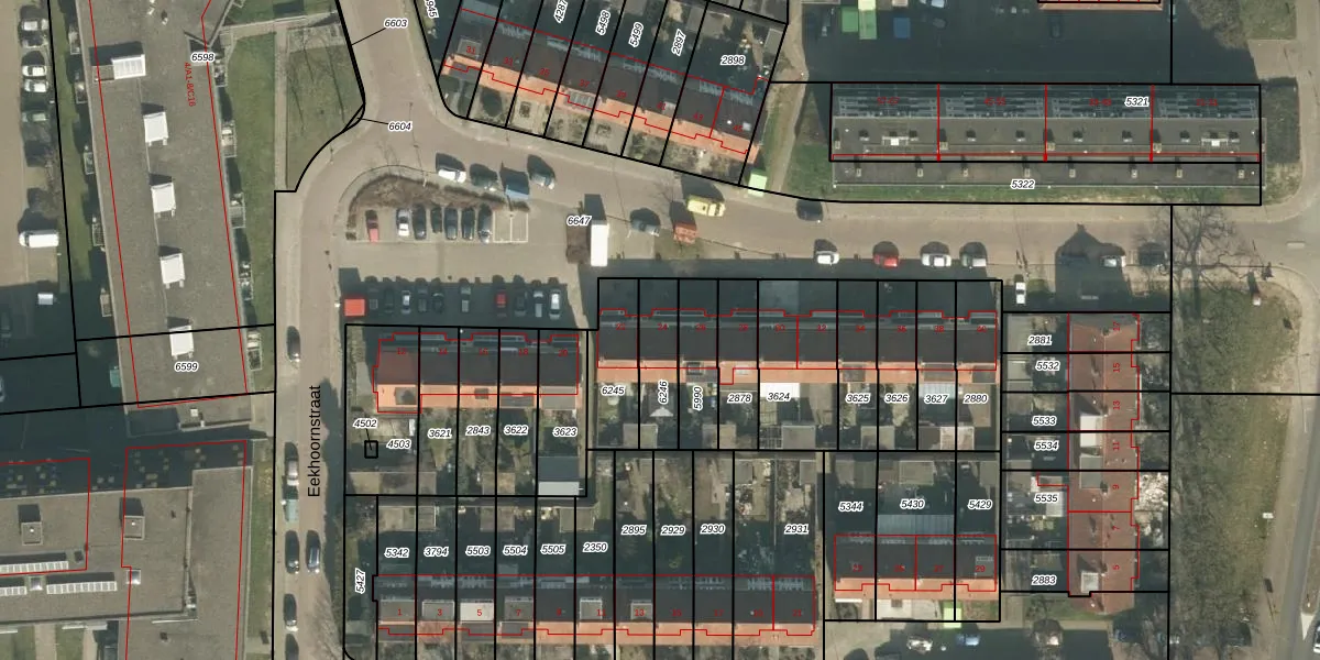 Het perceel waarop Eekhoornstraat 24 staat heeft een oppervlakte van 155 m². Dit is een middelgroot perceel. De perceeloppervlakte wordt geregistreerd door het Kadaster. Gedetailleerde informatie over de maten van dit perceel kunt u vinden in het rapport Kadastrale kaart met maatvoering van Eekhoornstraat 24.