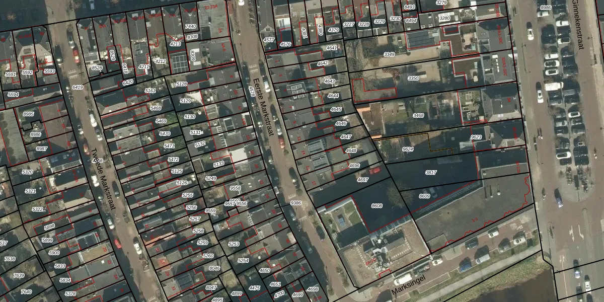 Het perceel waarop Eerste Markstraat 13 staat heeft een oppervlakte van 123 m². Dit is een middelgroot perceel. De perceeloppervlakte wordt geregistreerd door het Kadaster. Gedetailleerde informatie over de maten van dit perceel kunt u vinden in het rapport Kadastrale kaart met maatvoering van Eerste Markstraat 13.
