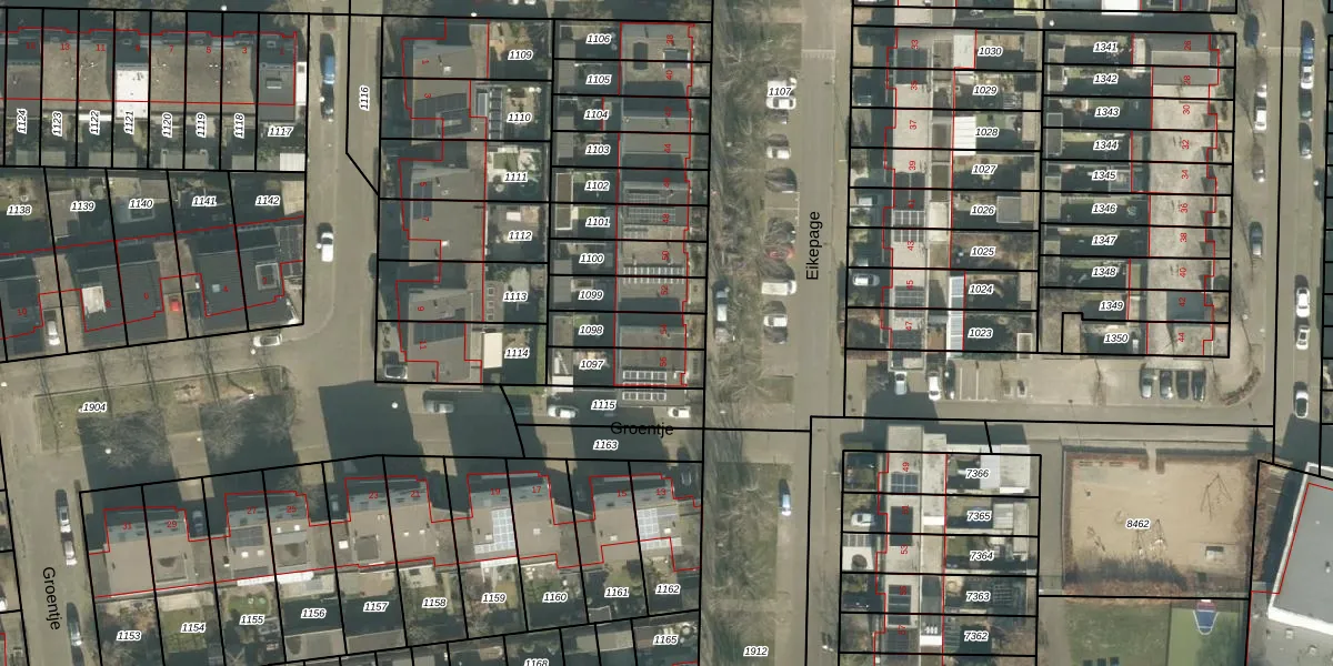 Eikepage 54 is gelegen op kadastraal perceel PCH00P1098. Deze kadastrale aanduiding is uniek en wordt gebruikt door het Kadaster om eigendomsrechten en andere zakelijke rechten vast te leggen. Het perceel maakt onderdeel uit van de kadastrale gemeente Princenhage.