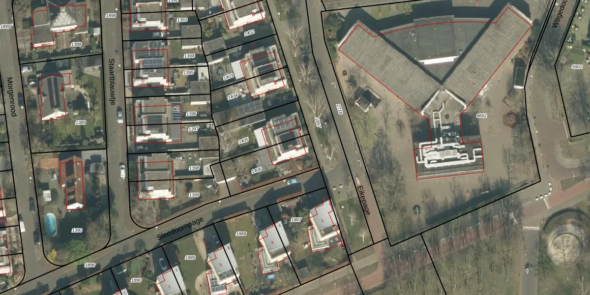 Het perceel waarop Eikepage 68 staat heeft een oppervlakte van 383 m². Dit is een groot perceel. De perceeloppervlakte wordt geregistreerd door het Kadaster. Gedetailleerde informatie over de maten van dit perceel kunt u vinden in het rapport Kadastrale kaart met maatvoering van Eikepage 68.