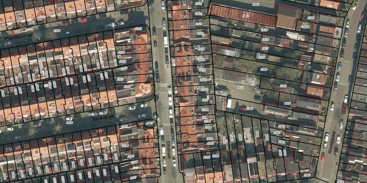 Eikstraat 14 is gelegen op kadastraal perceel BDA00E2533. Deze kadastrale aanduiding is uniek en wordt gebruikt door het Kadaster om eigendomsrechten en andere zakelijke rechten vast te leggen. Het perceel maakt onderdeel uit van de kadastrale gemeente Breda.