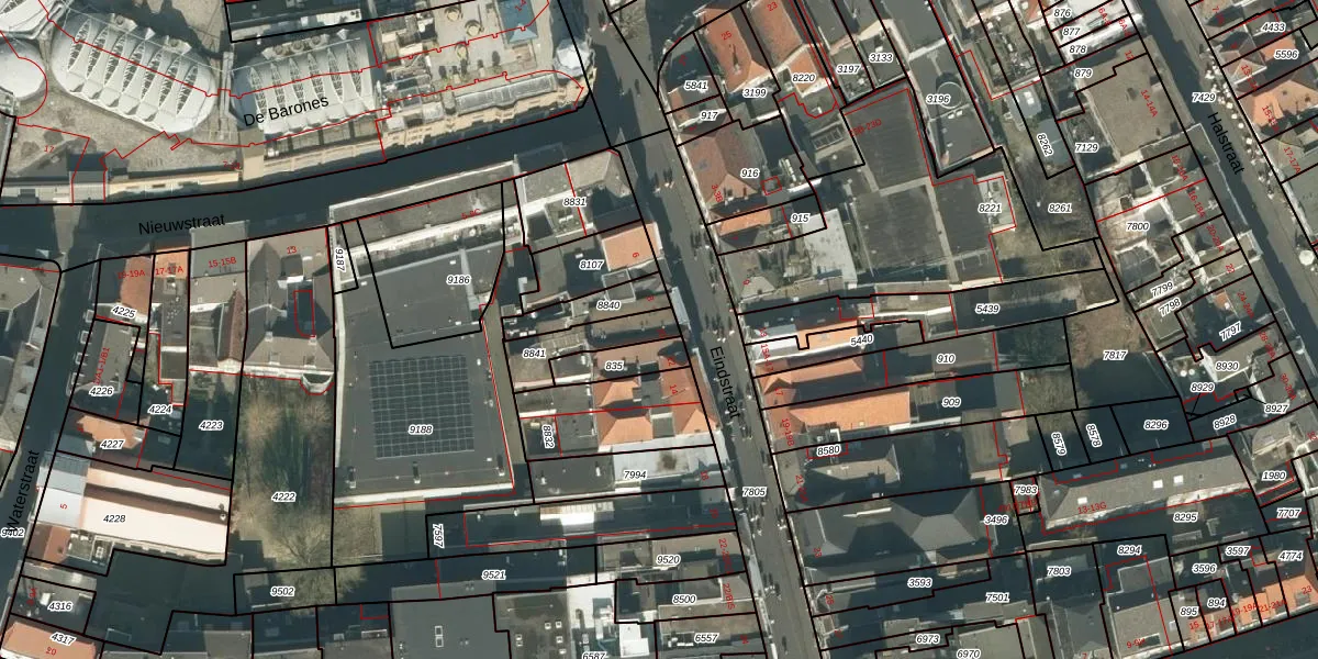 Gebruik de zoekbalk of klik op een perceel voor informatie over de adressen binnen dit perceel.