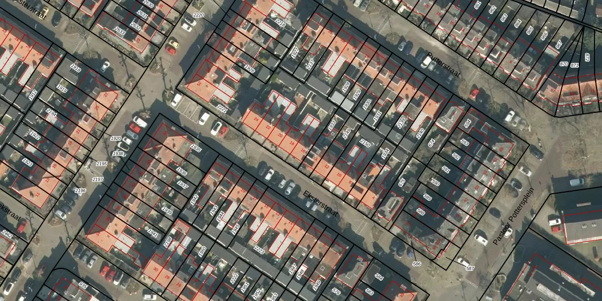 Het perceel waarop Eksterstraat 16 staat heeft een oppervlakte van 1277 m². Dit is een zeer groot perceel. De perceeloppervlakte wordt geregistreerd door het Kadaster. Gedetailleerde informatie over de maten van dit perceel kunt u vinden in het rapport Kadastrale kaart met maatvoering van Eksterstraat 16.