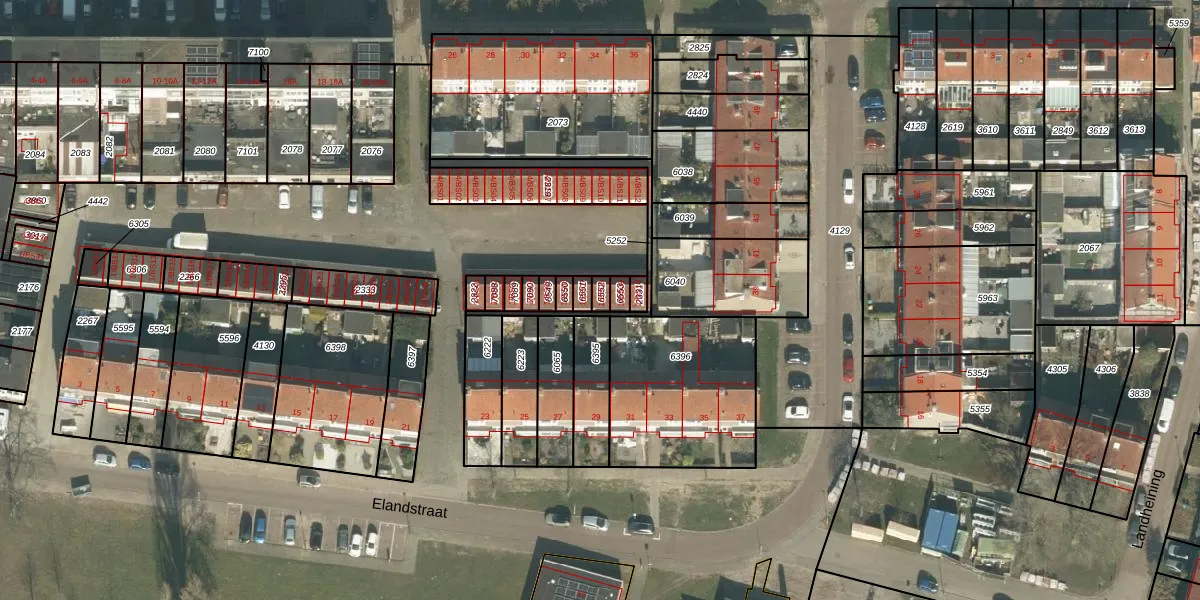 Het perceel waarop Elandstraat 1-BS08 staat heeft een oppervlakte van 18 m². Dit is een klein perceel. De perceeloppervlakte wordt geregistreerd door het Kadaster. Gedetailleerde informatie over de maten van dit perceel kunt u vinden in het rapport Kadastrale kaart met maatvoering van Elandstraat 1-BS08.