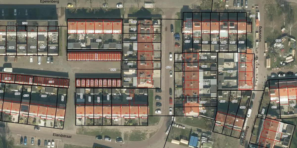 Het perceel waarop Elandstraat 41 staat heeft een oppervlakte van 339 m². Dit is een groot perceel. De perceeloppervlakte wordt geregistreerd door het Kadaster. Gedetailleerde informatie over de maten van dit perceel kunt u vinden in het rapport Kadastrale kaart met maatvoering van Elandstraat 41.