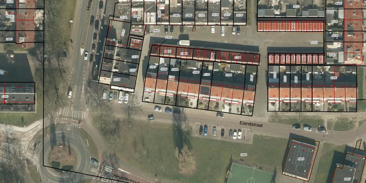 Het perceel waarop Elandstraat 9 staat heeft een oppervlakte van 321 m². Dit is een groot perceel. De perceeloppervlakte wordt geregistreerd door het Kadaster. Gedetailleerde informatie over de maten van dit perceel kunt u vinden in het rapport Kadastrale kaart met maatvoering van Elandstraat 9.