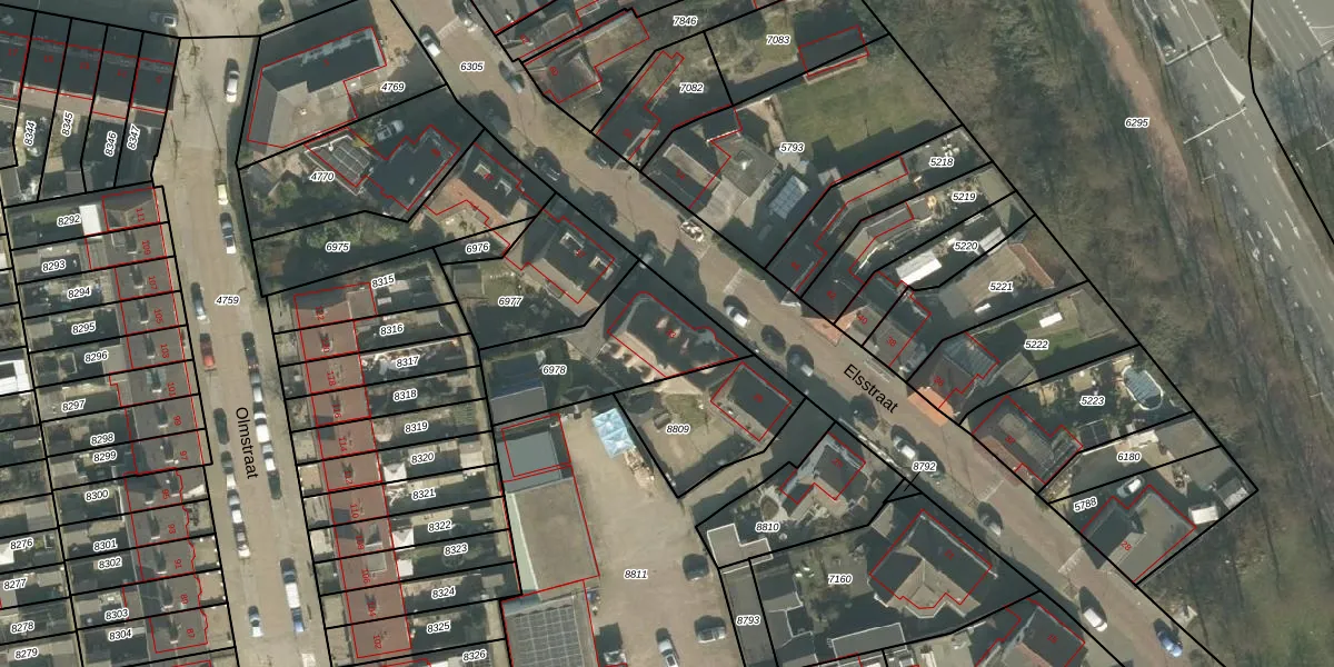 Het perceel waarop Elsstraat 33 staat heeft een oppervlakte van 465 m². Dit is een groot perceel. De perceeloppervlakte wordt geregistreerd door het Kadaster. Gedetailleerde informatie over de maten van dit perceel kunt u vinden in het rapport Kadastrale kaart met maatvoering van Elsstraat 33.