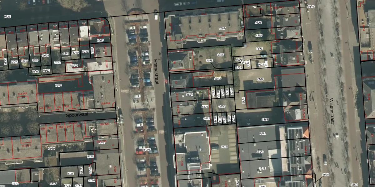 Emmastraat 12-A is gelegen op kadastraal perceel BDA00B8824. Deze kadastrale aanduiding is uniek en wordt gebruikt door het Kadaster om eigendomsrechten en andere zakelijke rechten vast te leggen. Het perceel maakt onderdeel uit van de kadastrale gemeente Breda.