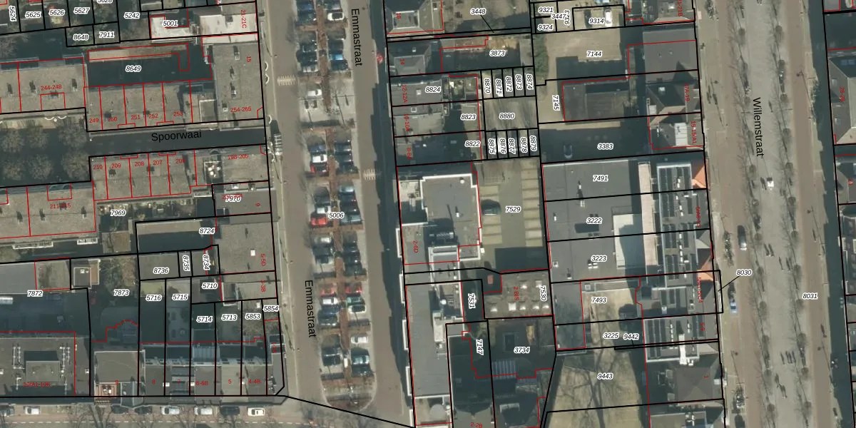 Het perceel waarop Emmastraat 6-B staat heeft een oppervlakte van 867 m². Dit is een groot perceel. De perceeloppervlakte wordt geregistreerd door het Kadaster. Gedetailleerde informatie over de maten van dit perceel kunt u vinden in het rapport Kadastrale kaart met maatvoering van Emmastraat 6-B.