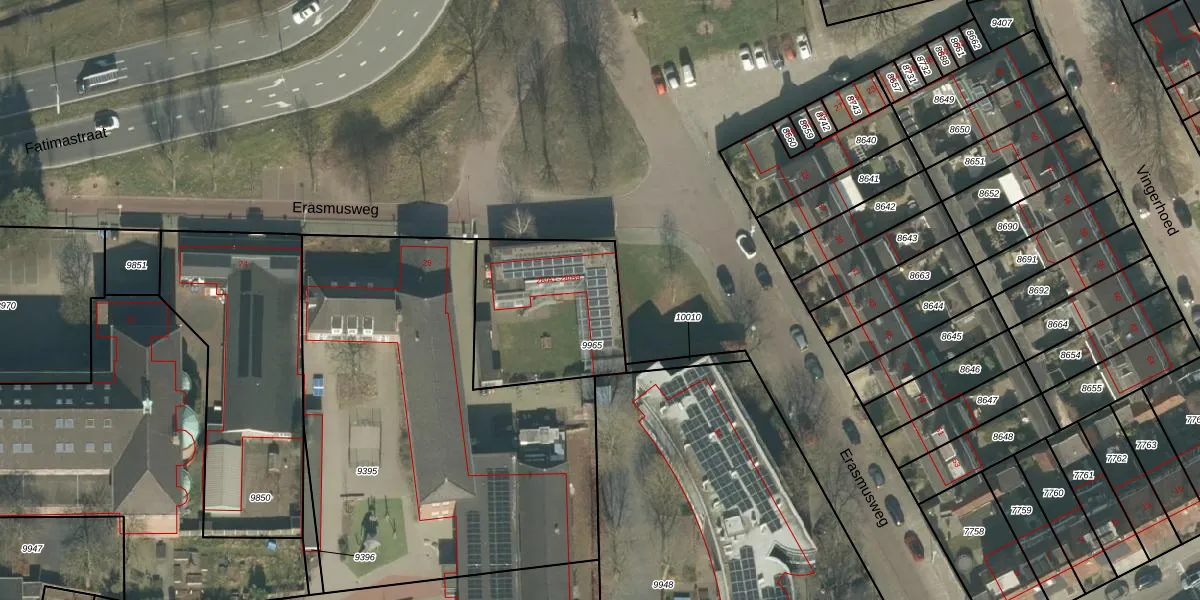 Het perceel waarop Erasmusweg 28-B6 staat heeft een oppervlakte van 566 m². Dit is een groot perceel. De perceeloppervlakte wordt geregistreerd door het Kadaster. Gedetailleerde informatie over de maten van dit perceel kunt u vinden in het rapport Kadastrale kaart met maatvoering van Erasmusweg 28-B6.