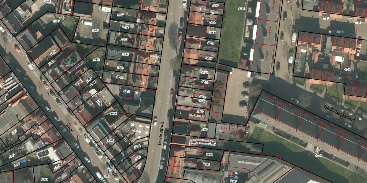 Gebruik de zoekbalk of klik op een perceel voor informatie over de adressen binnen dit perceel.