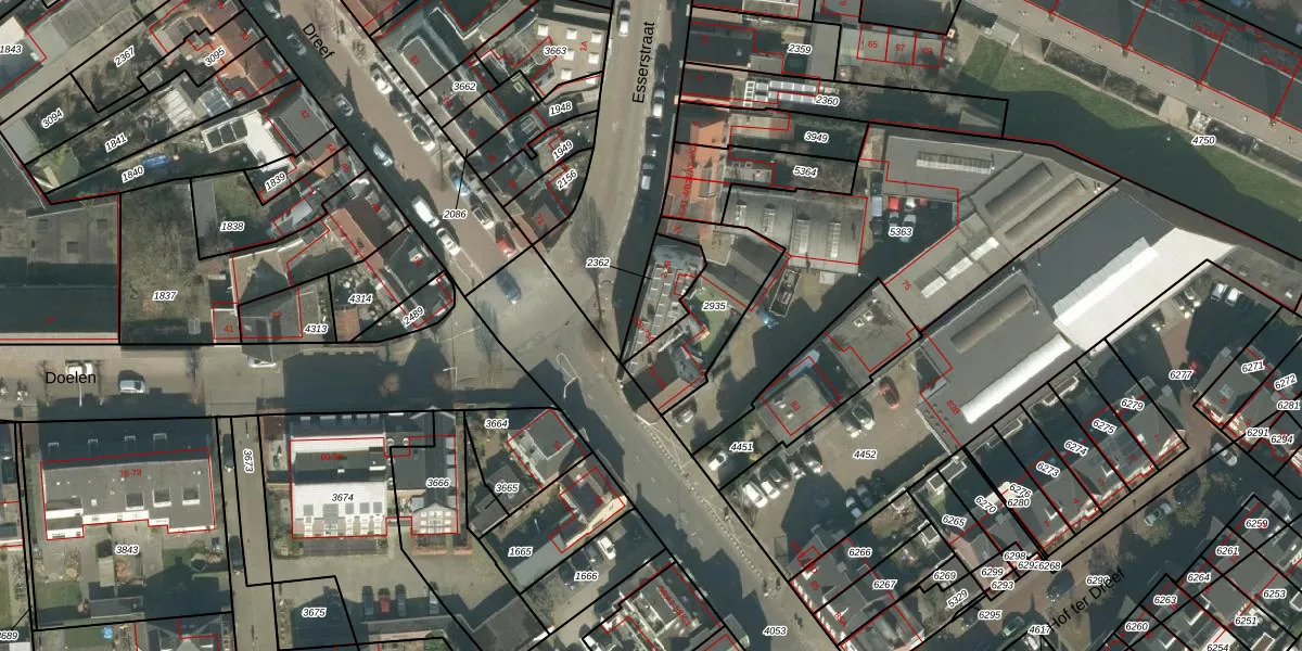 Esserstraat 2 is gelegen op kadastraal perceel PCH00I2362. Deze kadastrale aanduiding is uniek en wordt gebruikt door het Kadaster om eigendomsrechten en andere zakelijke rechten vast te leggen. Het perceel maakt onderdeel uit van de kadastrale gemeente Princenhage.