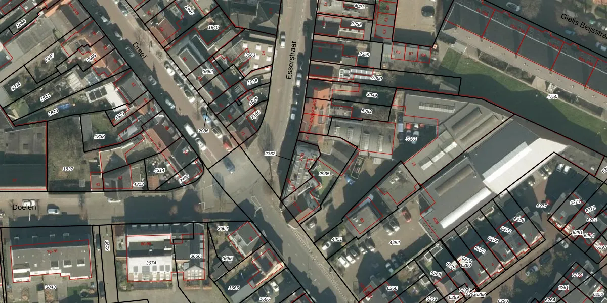 Esserstraat 2-B is gelegen op kadastraal perceel PCH00I2362. Deze kadastrale aanduiding is uniek en wordt gebruikt door het Kadaster om eigendomsrechten en andere zakelijke rechten vast te leggen. Het perceel maakt onderdeel uit van de kadastrale gemeente Princenhage.