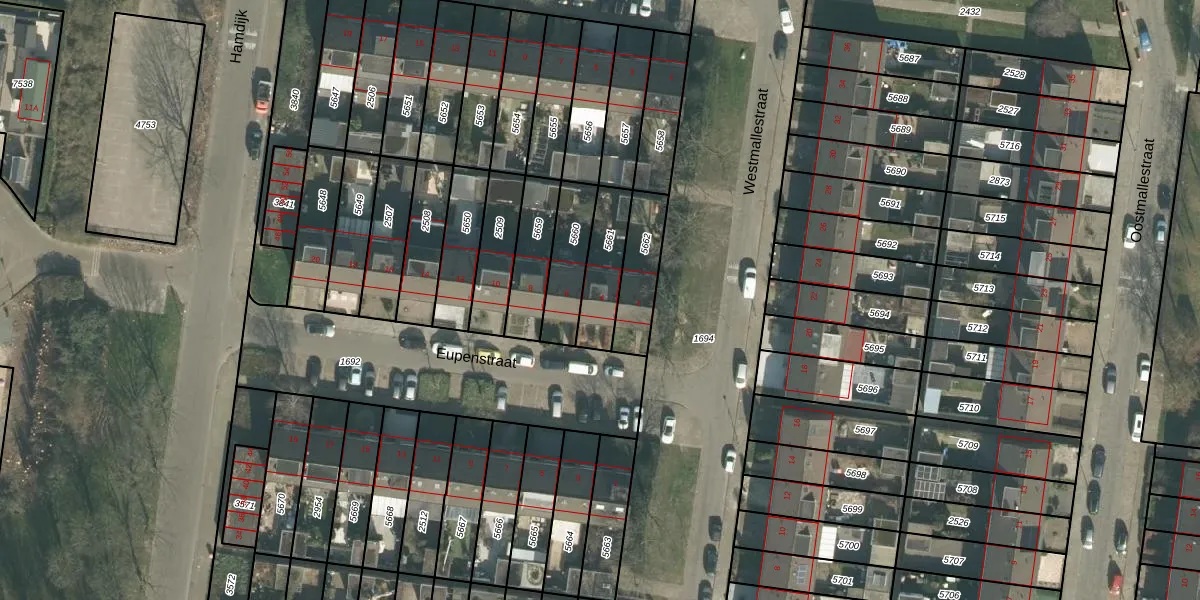 Het perceel waarop Eupenstraat 4 staat heeft een oppervlakte van 162 m². Dit is een middelgroot perceel. De perceeloppervlakte wordt geregistreerd door het Kadaster. Gedetailleerde informatie over de maten van dit perceel kunt u vinden in het rapport Kadastrale kaart met maatvoering van Eupenstraat 4.