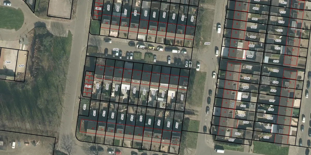 Eupenstraat 7 is gelegen op kadastraal perceel BDA00G5666. Deze kadastrale aanduiding is uniek en wordt gebruikt door het Kadaster om eigendomsrechten en andere zakelijke rechten vast te leggen. Het perceel maakt onderdeel uit van de kadastrale gemeente Breda.