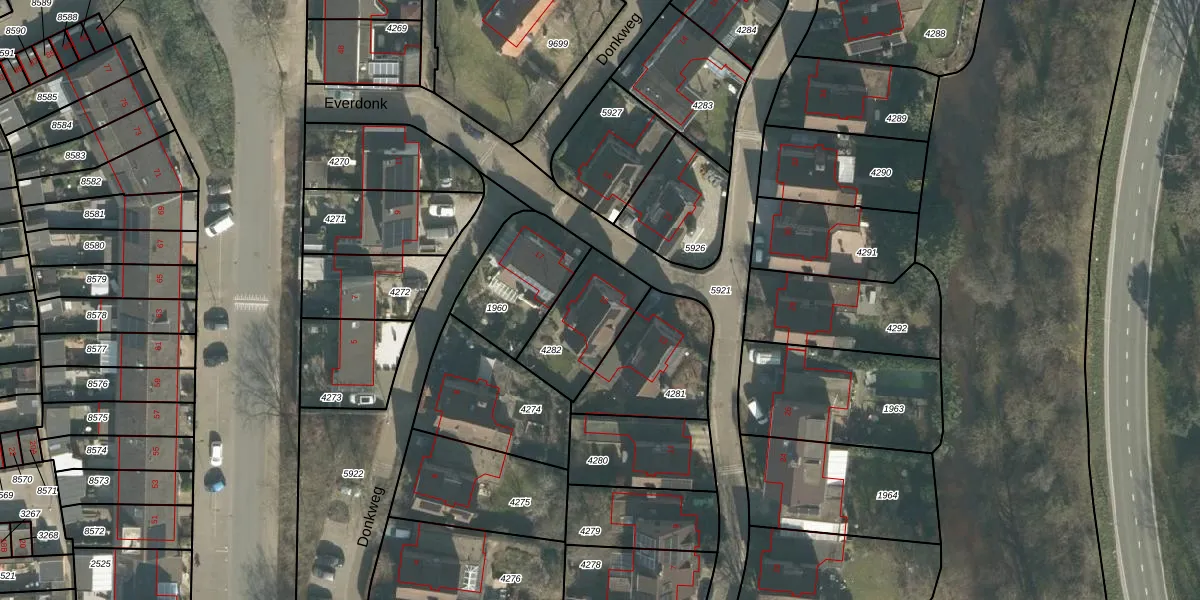 Everdonk 15 is gelegen op kadastraal perceel BDA00H4282. Deze kadastrale aanduiding is uniek en wordt gebruikt door het Kadaster om eigendomsrechten en andere zakelijke rechten vast te leggen. Het perceel maakt onderdeel uit van de kadastrale gemeente Breda.