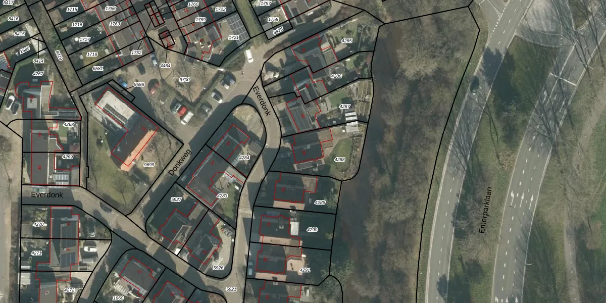 Everdonk 36 is gelegen op kadastraal perceel BDA00H4288. Deze kadastrale aanduiding is uniek en wordt gebruikt door het Kadaster om eigendomsrechten en andere zakelijke rechten vast te leggen. Het perceel maakt onderdeel uit van de kadastrale gemeente Breda.