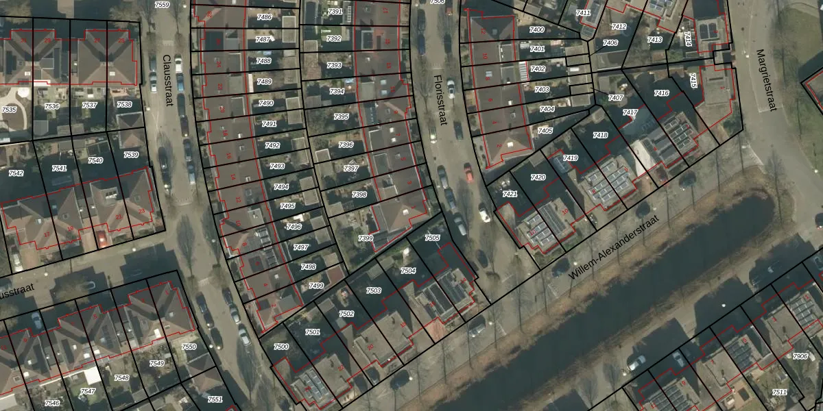 Florisstraat 1 is gelegen op kadastraal perceel BDA00E7399. Deze kadastrale aanduiding is uniek en wordt gebruikt door het Kadaster om eigendomsrechten en andere zakelijke rechten vast te leggen. Het perceel maakt onderdeel uit van de kadastrale gemeente Breda.