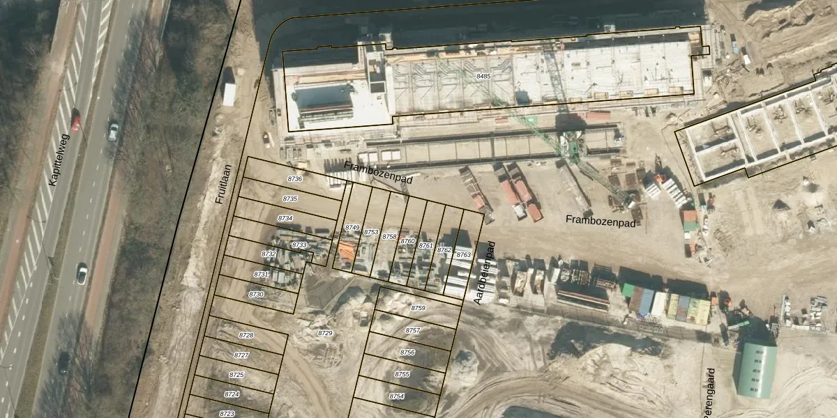 Het perceel waarop Frambozenpad 8 staat heeft een oppervlakte van 95 m². Dit is een klein perceel. De perceeloppervlakte wordt geregistreerd door het Kadaster. Gedetailleerde informatie over de maten van dit perceel kunt u vinden in het rapport Kadastrale kaart met maatvoering van Frambozenpad 8.