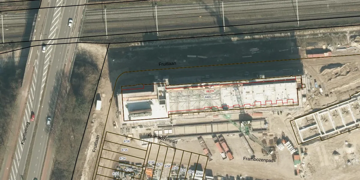 Fruitlaan 102 is gelegen op kadastraal perceel BDA00G8485. Deze kadastrale aanduiding is uniek en wordt gebruikt door het Kadaster om eigendomsrechten en andere zakelijke rechten vast te leggen. Het perceel maakt onderdeel uit van de kadastrale gemeente Breda.