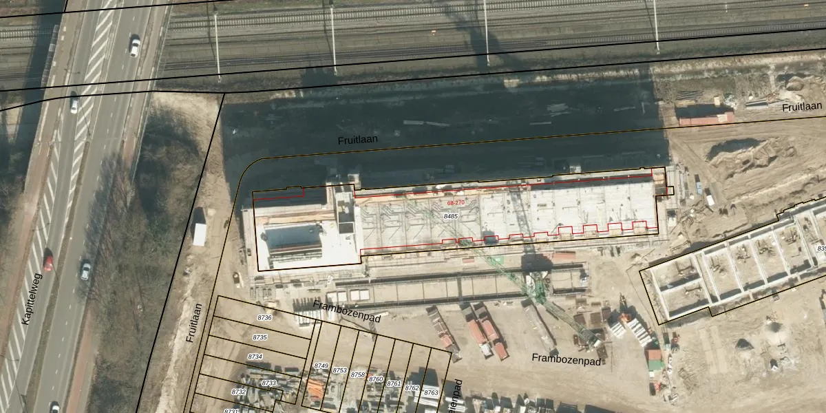Fruitlaan 136 is gelegen op kadastraal perceel BDA00G8485. Deze kadastrale aanduiding is uniek en wordt gebruikt door het Kadaster om eigendomsrechten en andere zakelijke rechten vast te leggen. Het perceel maakt onderdeel uit van de kadastrale gemeente Breda.