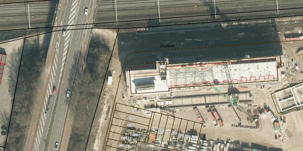 Fruitlaan 160 is gelegen op kadastraal perceel BDA00G8485. Deze kadastrale aanduiding is uniek en wordt gebruikt door het Kadaster om eigendomsrechten en andere zakelijke rechten vast te leggen. Het perceel maakt onderdeel uit van de kadastrale gemeente Breda.