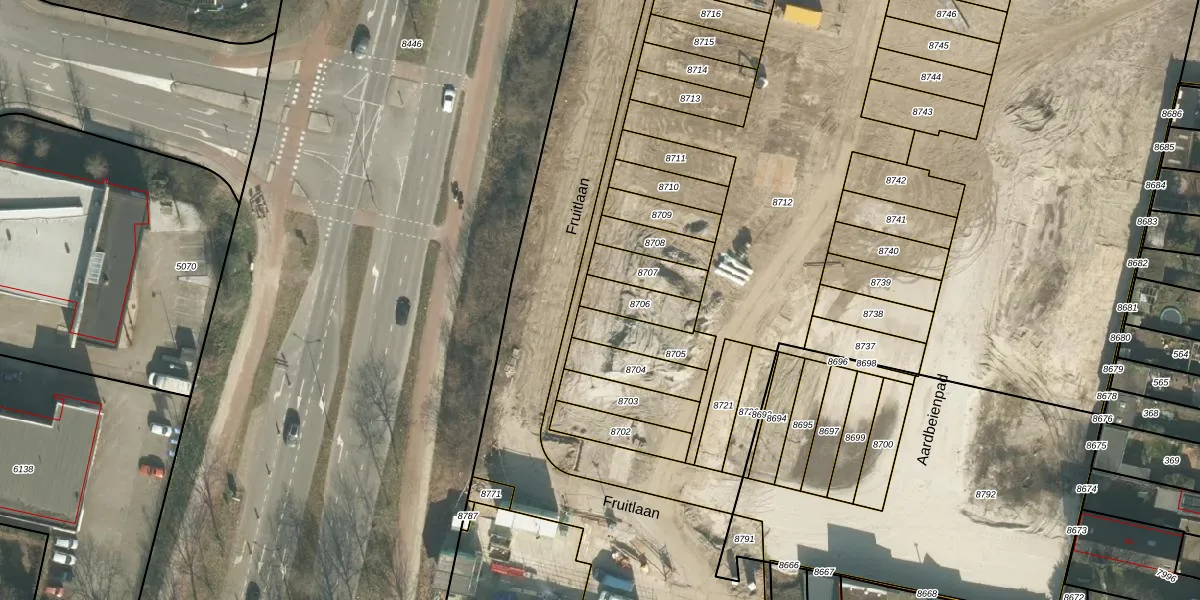 Gebruik de zoekbalk of klik op een perceel voor informatie over de adressen binnen dit perceel.