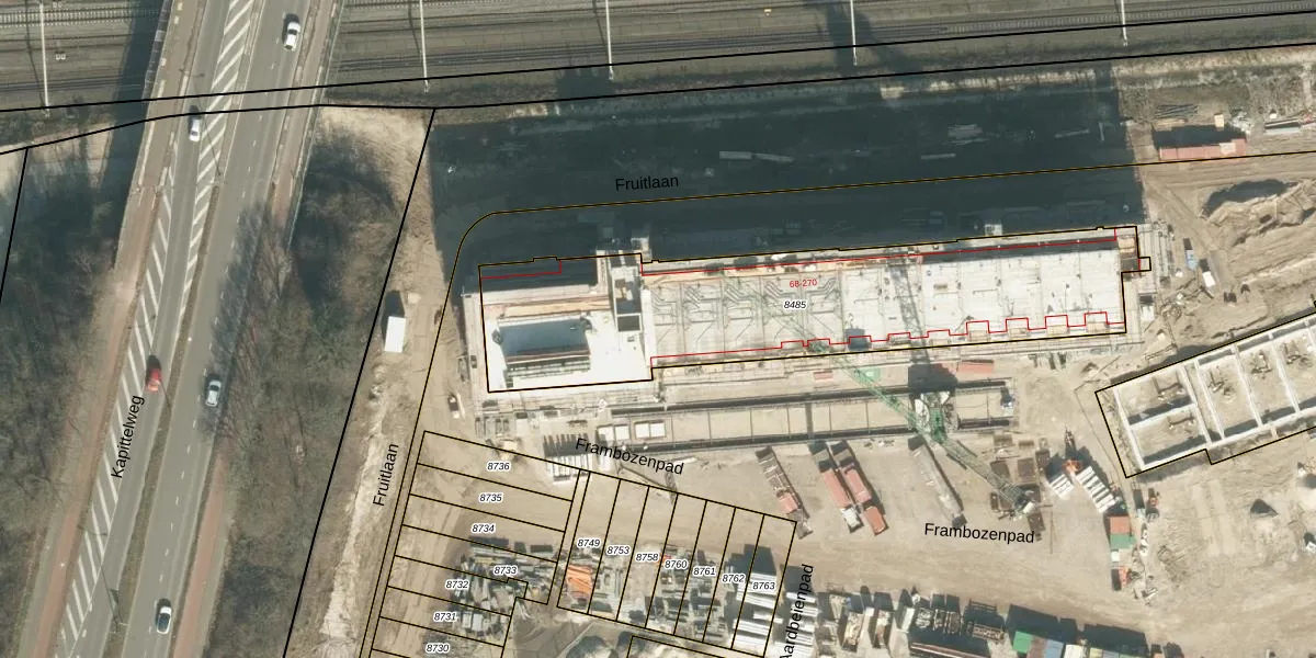 Fruitlaan 220 is gelegen op kadastraal perceel BDA00G8485. Deze kadastrale aanduiding is uniek en wordt gebruikt door het Kadaster om eigendomsrechten en andere zakelijke rechten vast te leggen. Het perceel maakt onderdeel uit van de kadastrale gemeente Breda.