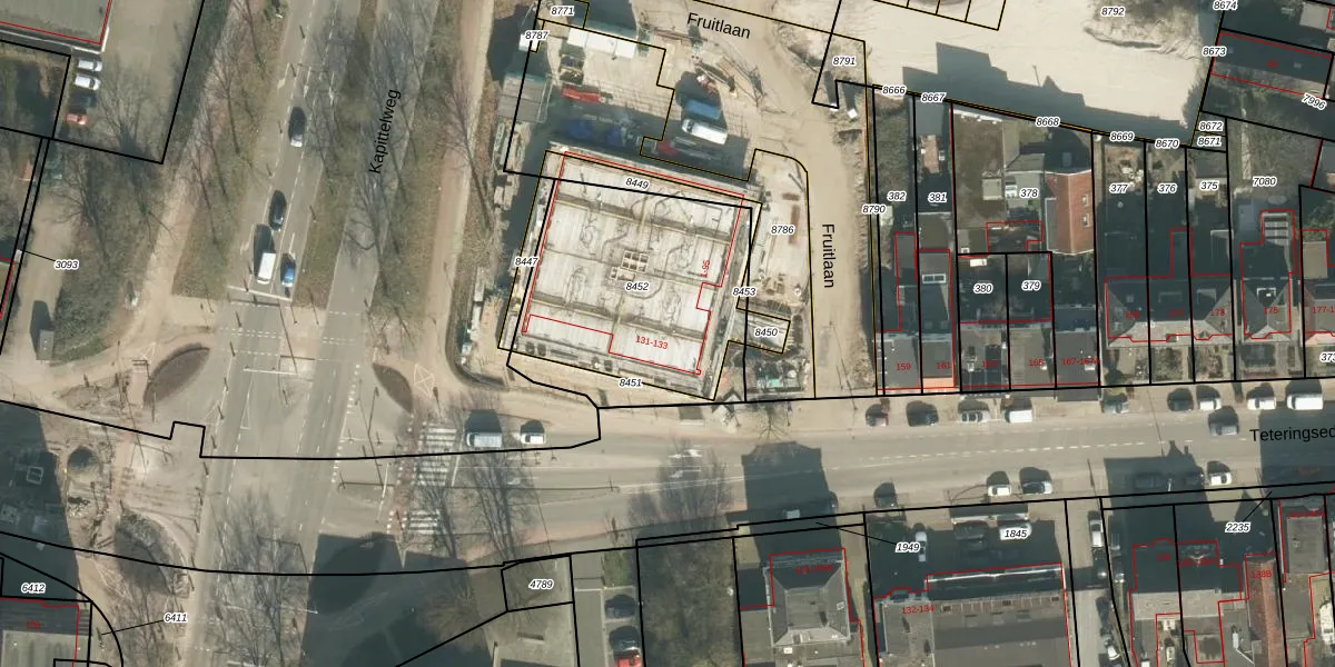 Fruitlaan 25 is gelegen op kadastraal perceel BDA00G8452. Deze kadastrale aanduiding is uniek en wordt gebruikt door het Kadaster om eigendomsrechten en andere zakelijke rechten vast te leggen. Het perceel maakt onderdeel uit van de kadastrale gemeente Breda.
