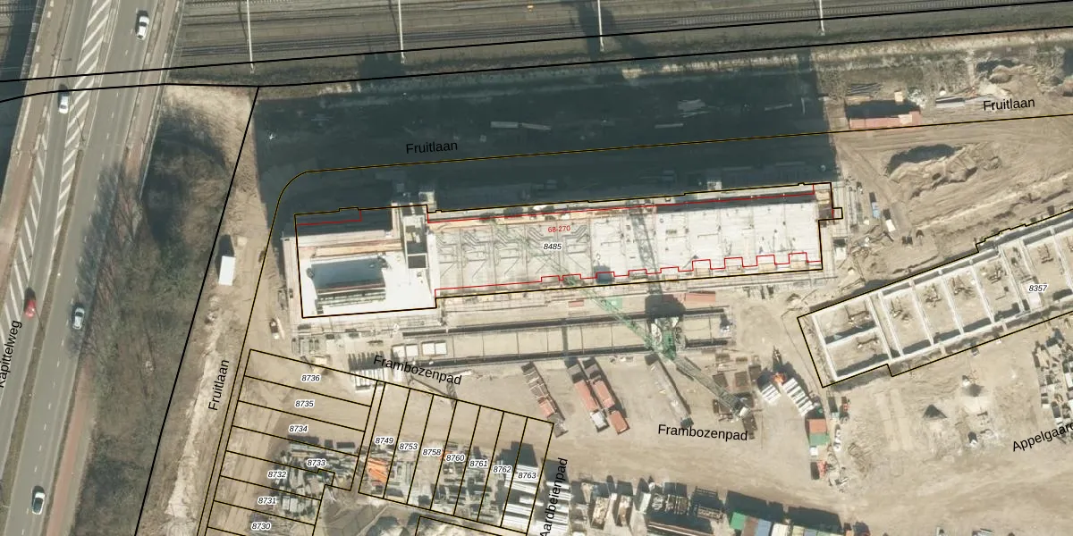 Fruitlaan 250 is gelegen op kadastraal perceel BDA00G8485. Deze kadastrale aanduiding is uniek en wordt gebruikt door het Kadaster om eigendomsrechten en andere zakelijke rechten vast te leggen. Het perceel maakt onderdeel uit van de kadastrale gemeente Breda.