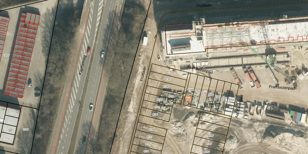 Fruitlaan 64 is gelegen op kadastraal perceel BDA00G8735. Deze kadastrale aanduiding is uniek en wordt gebruikt door het Kadaster om eigendomsrechten en andere zakelijke rechten vast te leggen. Het perceel maakt onderdeel uit van de kadastrale gemeente Breda.