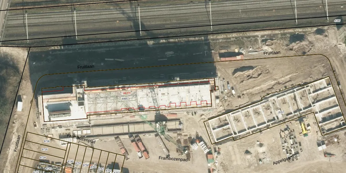 Het perceel waarop Fruitlaan 84 staat heeft een oppervlakte van 1659 m². Dit is een zeer groot perceel. De perceeloppervlakte wordt geregistreerd door het Kadaster. Gedetailleerde informatie over de maten van dit perceel kunt u vinden in het rapport Kadastrale kaart met maatvoering van Fruitlaan 84.
