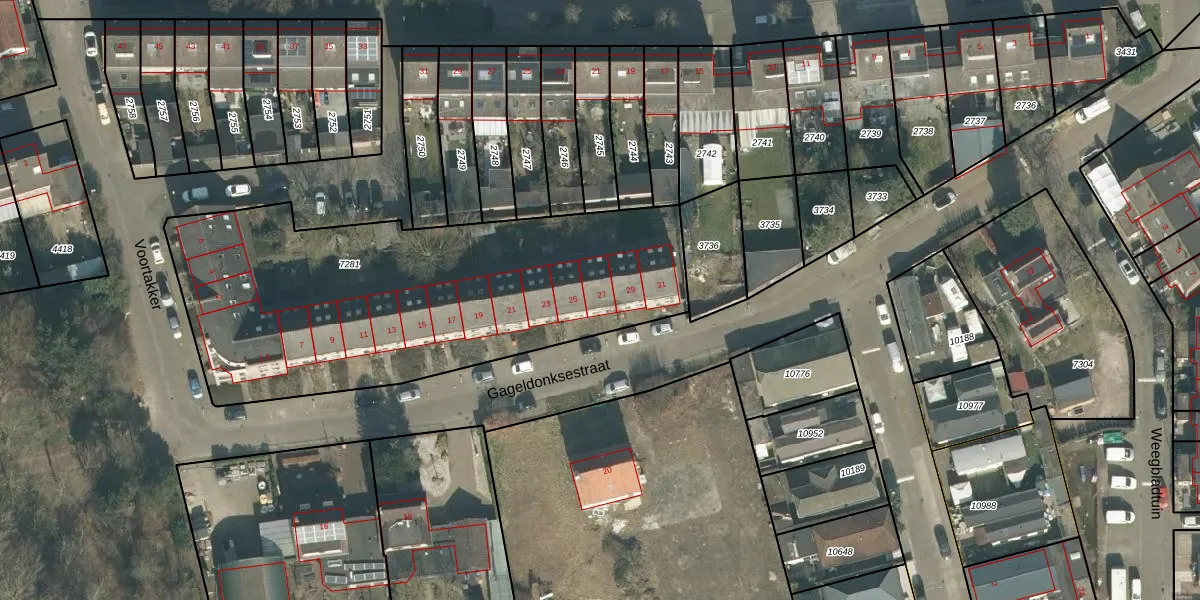 Het perceel waarop Gageldonksestraat 27 staat heeft een oppervlakte van 2093 m². Dit is een zeer groot perceel. De perceeloppervlakte wordt geregistreerd door het Kadaster. Gedetailleerde informatie over de maten van dit perceel kunt u vinden in het rapport Kadastrale kaart met maatvoering van Gageldonksestraat 27.