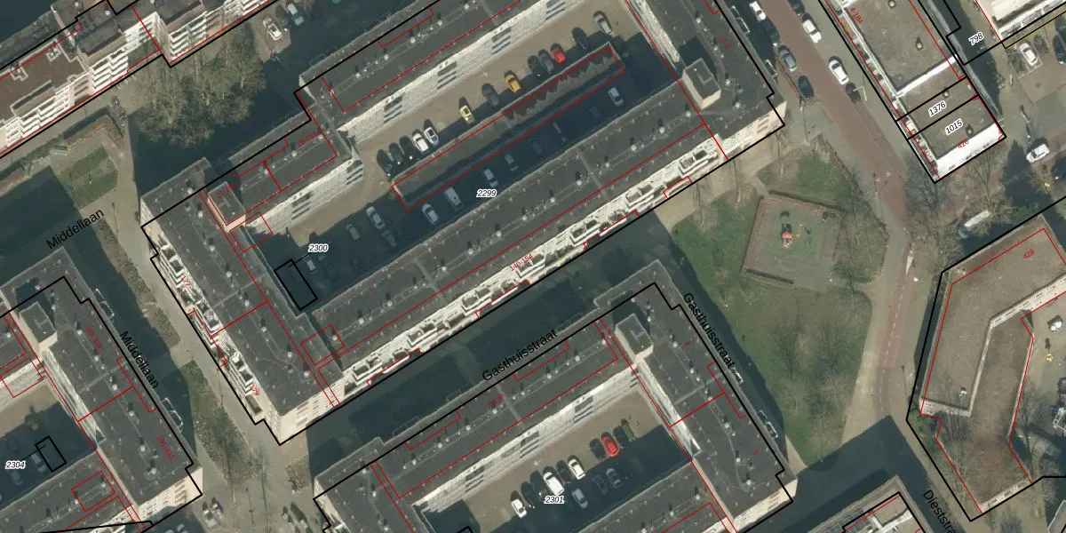 Het perceel waarop Gasthuisstraat 146 staat heeft een oppervlakte van 5983 m². Dit is een zeer groot perceel. De perceeloppervlakte wordt geregistreerd door het Kadaster. Gedetailleerde informatie over de maten van dit perceel kunt u vinden in het rapport Kadastrale kaart met maatvoering van Gasthuisstraat 146.
